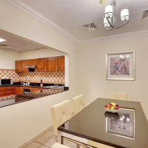 The 87 rooms at this Dubai hotel are air-conditioned, some of them have a stone fireplace along with coffee and tea making equipment. They also have coffee and tea making facilities, a cooktop, and kitchenware. Bathroom amenities include a bidet and a shower, along with comforts such as a hair dryer and toiletries.